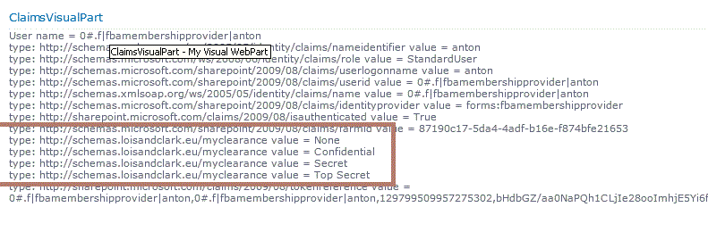 After finishing our previous blog post about the topic of claims we leaned back and relaxed, enjoying our SharePoint site collection supporting claims authentication, and marveled at the sheer brilliance of our web part that displays all current claims. Then, Margriet got involved in a forum discussion at http://social.technet.microsoft.com/Forums/en-US/sharepoint2010programming/thread/415297a2-941b-411a-bfc5-e1045e0ae80e and we started realizing that the first article wasn’t enough and we had to go at least one step further.