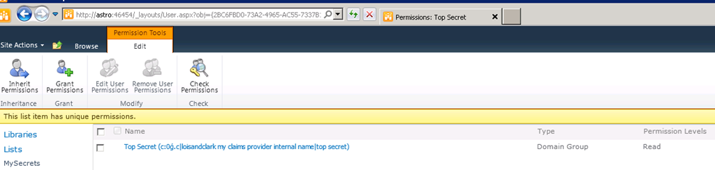 Because of these shortcomings in an overall good article, we felt the need to redo parts of the article, keeping the original example intact (being fine as it is). This provides the added benefit that now the code can be copied and pasted (although we’ve put in minor changes), instead of retyped, and shows how to assign permissions to SharePoint objects based on the newly created claims.