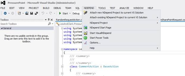 • There’s a VS add-in(also support VS 2012) allowing easy access to NDepend features: