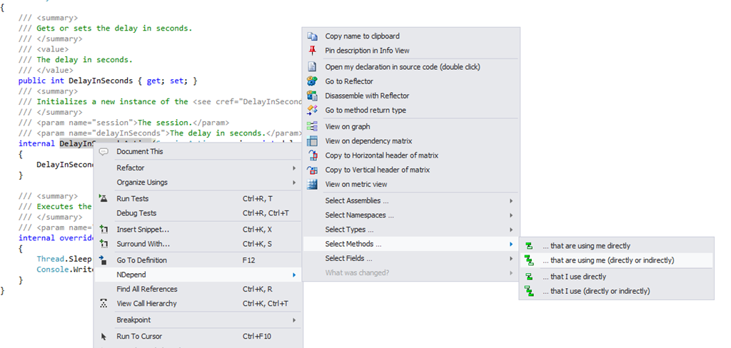 • Great in-context info. In the example below we use NDepend to find out which methods are using the current method: