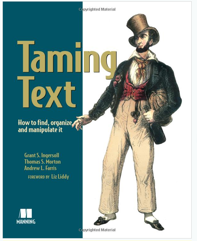 When we were technical reviewers of the book “Taming Text” it became quite clear that this was one of those rare cases where a very specific topic gets covered in great depth. We have one fear for this book, the fear that the audience for this book will be so small that the end result won’t be very satisfying for the authors. This is undeserved, as it is a great book.