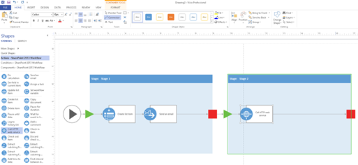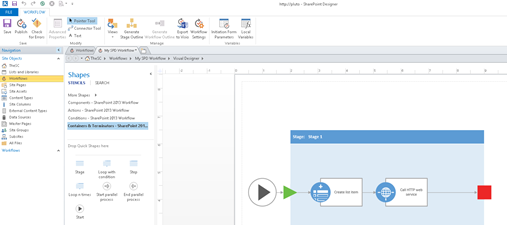 As a new addition to activities and conditions, SharePoint 2013 provides a new stage model. Stages provide a convenient way to group conditions and activities together and now are the building blocks for the new recommended best practice surrounding the construction of workflows that don’t have fixed execution paths, replacing the old and deprecated state workflow model.