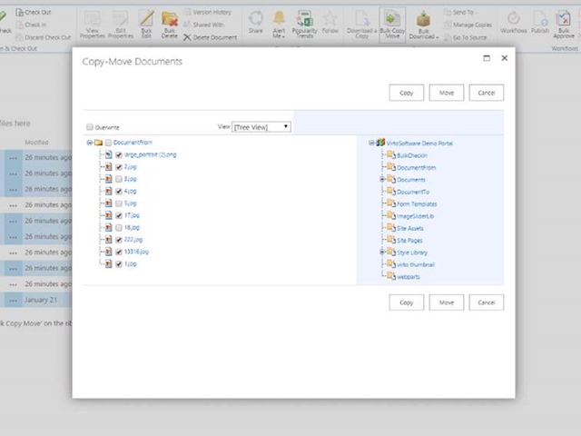 This is a component for SharePoint multiple file copy and move. The copying (or more often: moving) of large amounts of list items and/or documents is usually something that end users request of administrators, who usually use a high-end migration tool to do the heavy lifting. This component is great in that it places the power of moving larger amounts of misplaced documents/list items in the hands of end users in the form of a separate web part or an additional action in the Action menu. Also check out the Figure below.