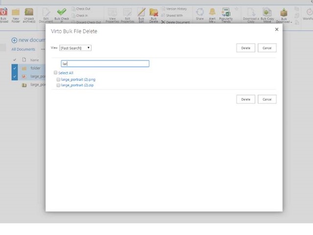 groups of items to delete via an advanced filtering mechanism (that allows you to delete by view, CAML queries, searches, etc). The Figure below shows an example of search support in deletion scenarios: