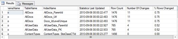 · Inspect the Number of Changes and % Rows Changed. If huge amounts of changes take place in SharePoint databases, it may be necessary to execute SharePoint statistics timer jobs more frequently either manually or by adjusting their schedules.